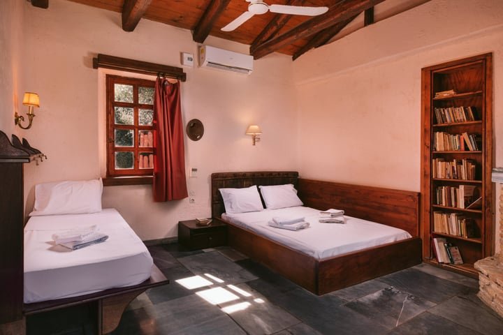 Chryssa’s Room sleeps three people, with a double bed and a single bed