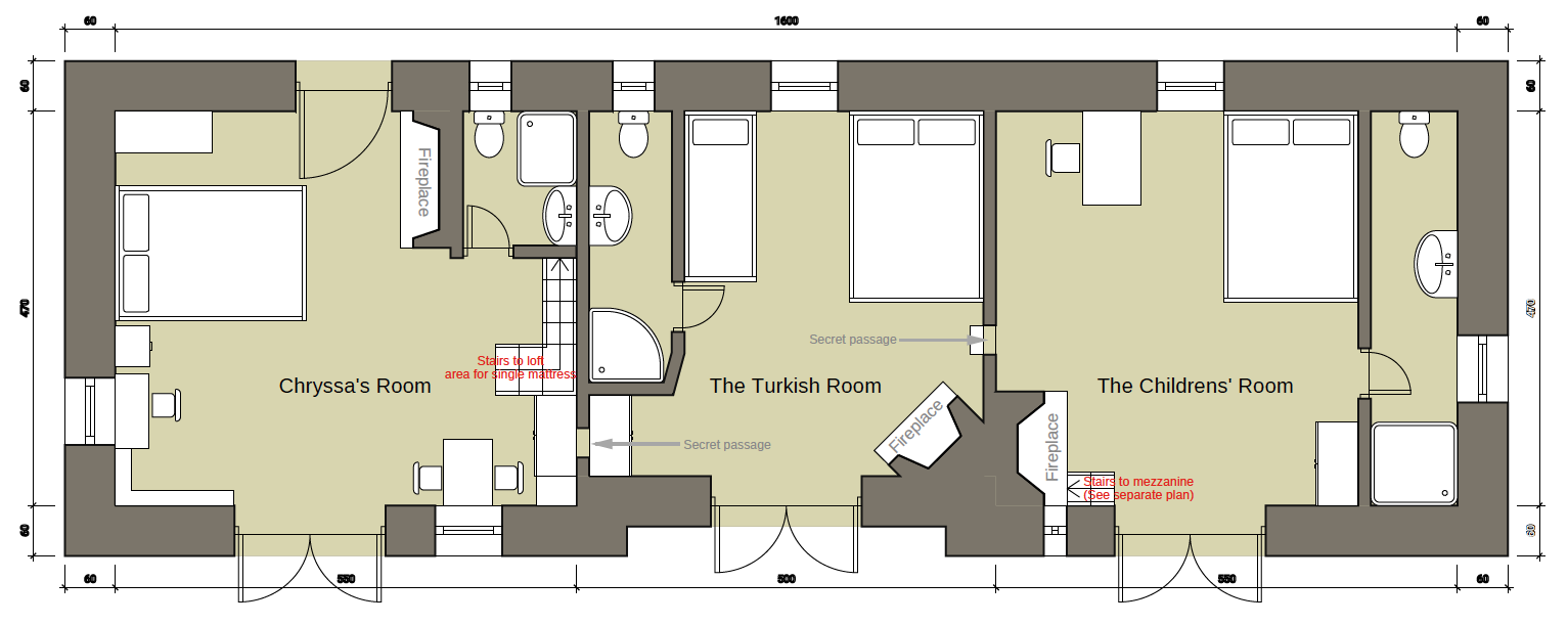 This building contains three bedrooms all with their own private entrance and en-suite bathroom.
