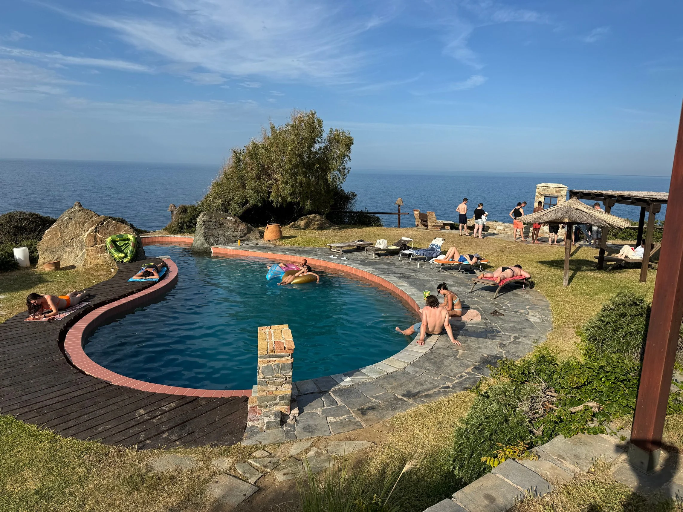 The saltwater pool is the perfect place to cool off and relax under the Greek sun. With views of the sea and plenty of space to lounge nearby, it’s an ideal spot for a swim or an afternoon unwind.
