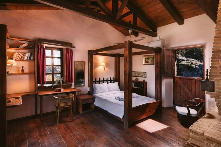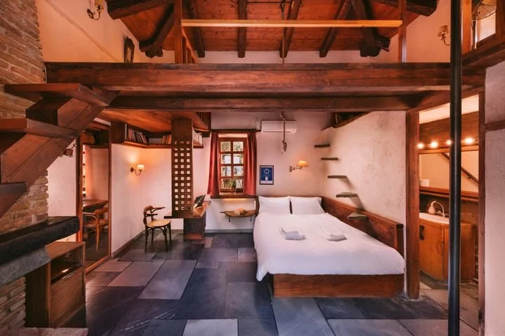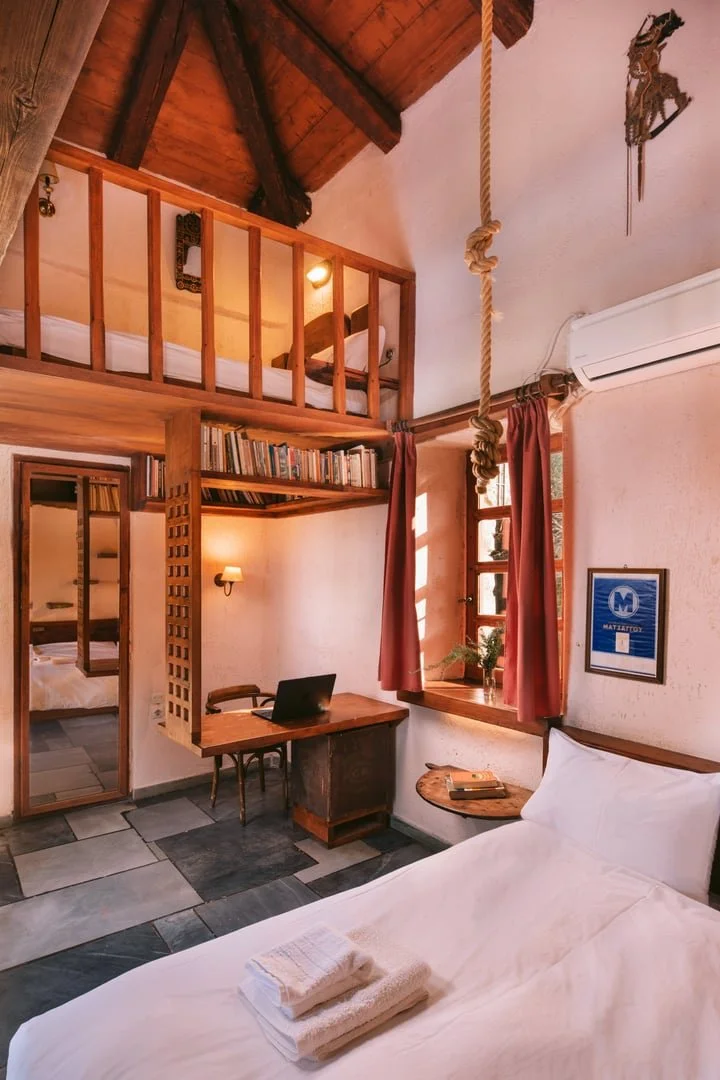 Chryssa’s Room sleeps three people, with a full bed downstairs and a single mattress in the loft