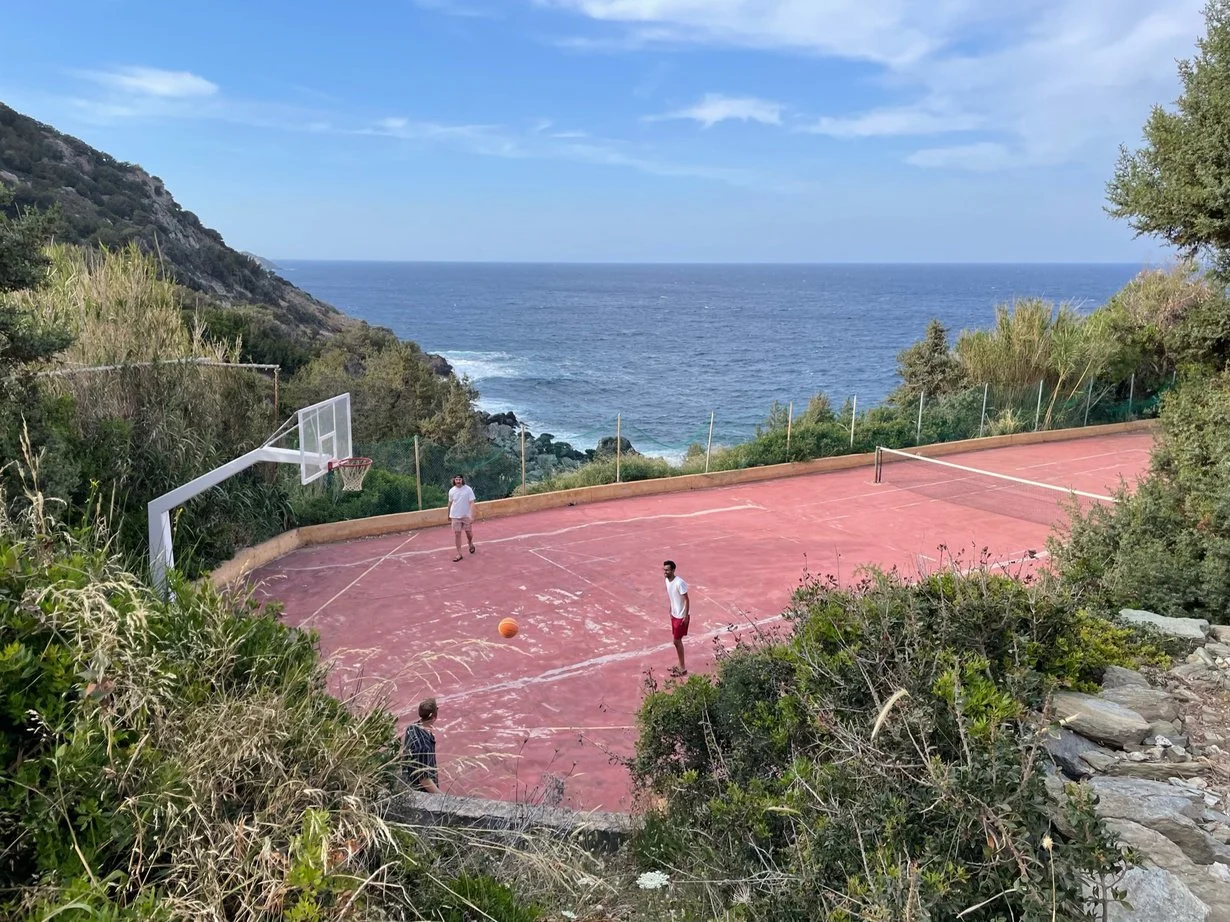 The villa’s multi-use sport court is set up for both tennis and basketball. Grab a racquet or a ball and enjoy a casual game with friends while taking in the surrounding scenery.